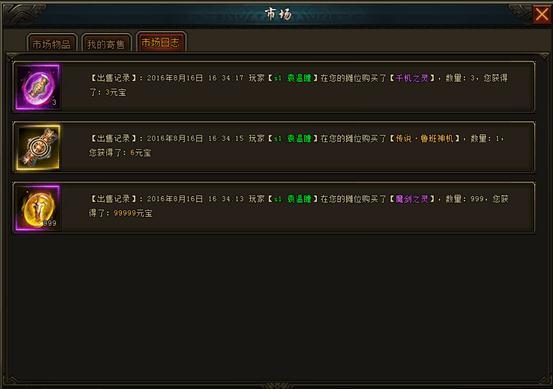 1、玩家可以通过市场日志查看出售物品的记录。